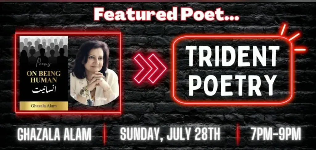 We invite you to join us for an evening dedicated to the pulse of contemporary verse as Ghazala Alam takes the stage at Trident Booksellers and Cafe. As the featured poet for this session, Ghazala will share selections from her collection, “On Being Human,” offering a lyrical look at the complexities of our shared journey. It is an opportunity to gather in the heart of Boston and experience a night of evocative language, deep reflection, and the human connection that only poetry can provide.